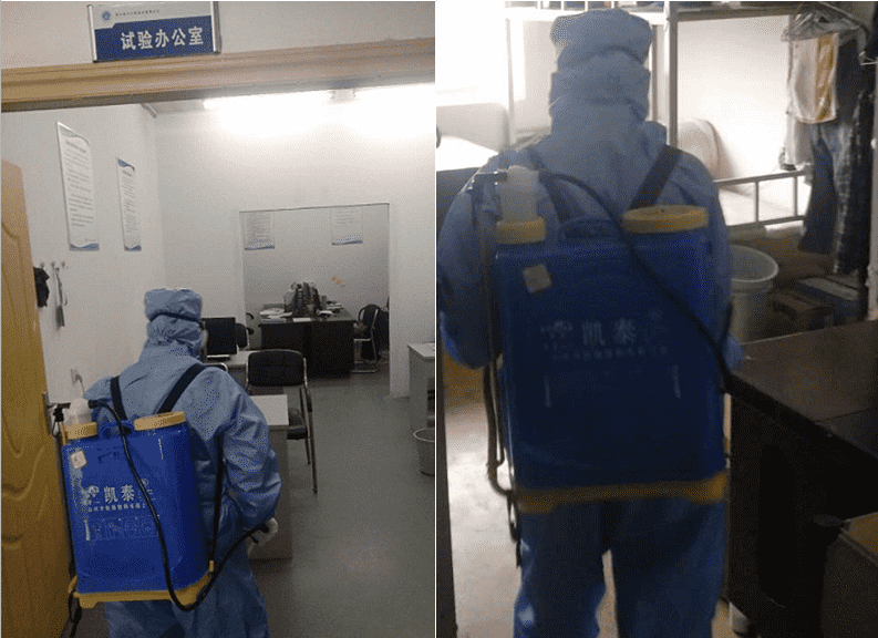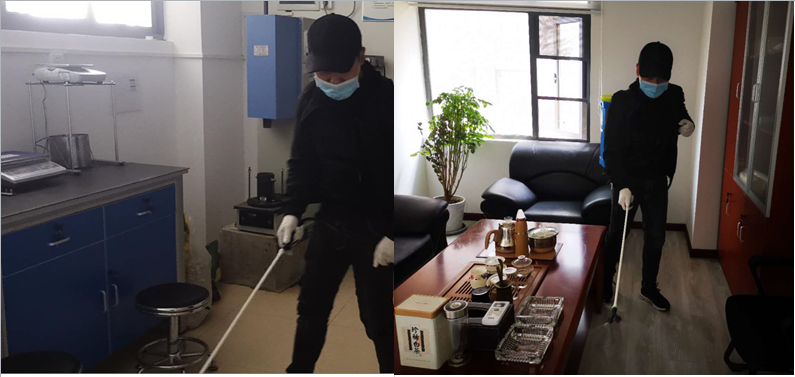 輕工工程公司孝感分場所試驗室、辦公室、員工宿舍消毒,為復工復產(chǎn)做準備