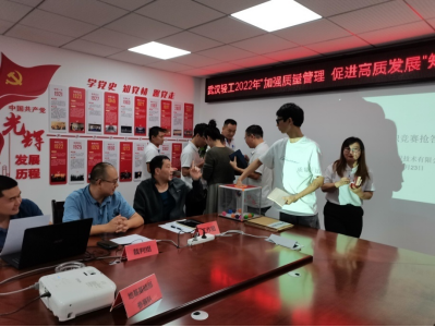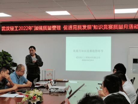 為貫徹落實湖北省住房和城鄉(xiāng)建設廳《關于組織開展2022年“質量月“活動的通知》廳頭[2022]1793號文的精神、武漢建筑業(yè)協(xié)會建筑檢測分會《關于開展2022年“質量月”活動的通知》精神、為促進工程質量不斷提升,營造我公司“質量至上”的良好氛圍,樹立質量第一的理念意識,我公司以“質量月”為契機,根據(jù)本公司發(fā)展需求,為規(guī)范管理,以實際行動迎接黨的二十大勝利召開,將質量管理活動抓實抓牢,強調履職盡責,為公司平穩(wěn)有序發(fā)展打下堅實基礎。武漢輕工工程技術有限公司(以下簡稱武漢輕工)于2022年9月23日組織開展了“武漢輕工2022年加強質量管理促進高質發(fā)展”知識競賽質量月活動。